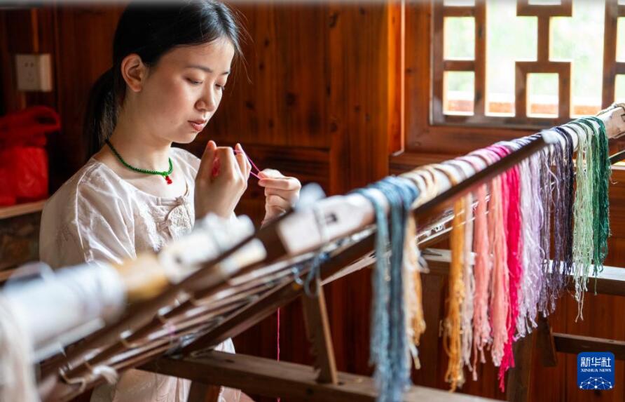 绣庄通过开展非遗进校园、刺绣展演、刺绣体验等活动,让越来越多的人了解桃源刺绣的魅力。肖瑶还不定期举办刺绣培训班,免费向村民传授刺绣技艺,为绣庄周边的妇女、返乡学生提供工作岗位,带动村民在家门口就业。为了给桃源刺绣赢得更广阔的生存空间,肖瑶带领团队开发文创产品,制作耳环、胸针、项链等饰品,把桃源刺绣带入大众视野,用青春焕新家乡非遗。