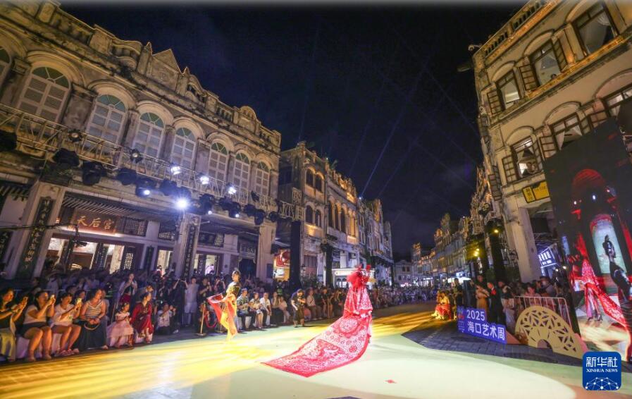 10月7日晚,作为2025海口艺术周系列活动之一,锦色·2025非遗潮秀在海口骑楼老街启幕。活动以“非遗再创”为核心,将剪纸艺术元素融入时装走秀。
