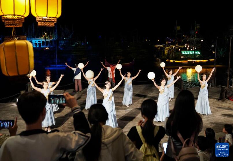 10月20日,游客在广西北海市合浦县的海丝首港景区观看演出。