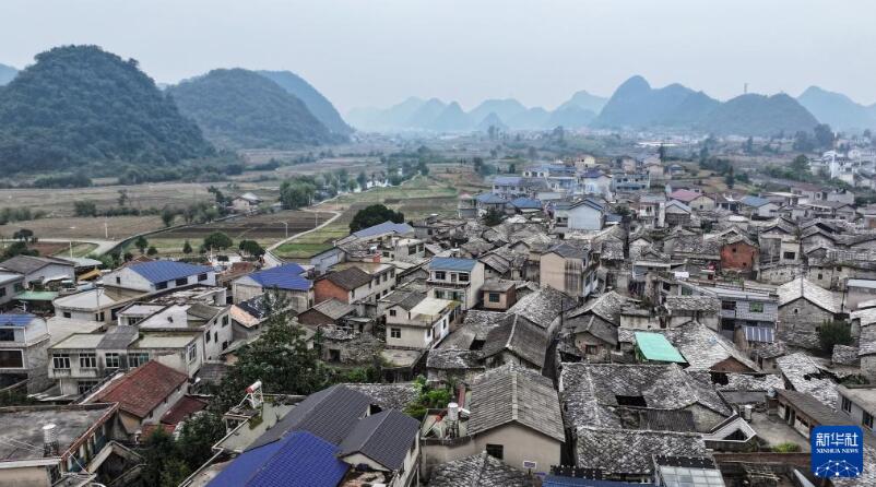 这是10月24日拍摄的贵州安顺鲍家屯村景色(无人机照片)。