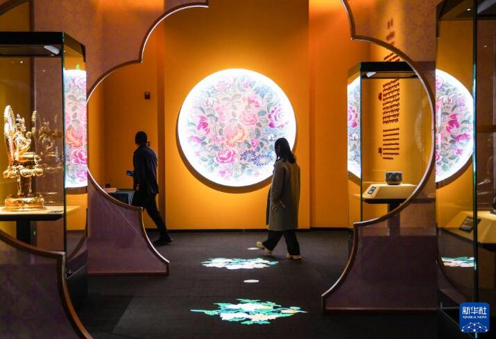 10月30日,游客在西藏博物馆“祥开万象——故宫与西藏文物联展”上参观。 为庆祝西藏自治区成立60周年,故宫博物院和西藏自治区文物局联合主办“祥开万象——故宫与西藏文物联展”,展示故宫博物院、西藏博物馆、布达拉宫、罗布林卡等四家文博单位95件套(114件)文物,吸引众多游客前往参观。该展览于8月28日在拉萨开展,将持续至12月1日。 新华社记者 周佳谊 摄