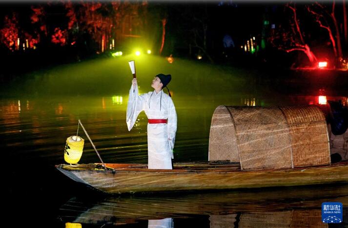 11月5日,在成都崇州市罨画池,演员在开幕式举行前进行文化实景演出。