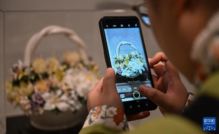 11月11日,观众在西班牙塔拉韦拉文化中心拍摄白瓷展品。