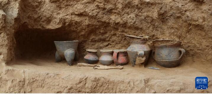这是陕西榆林石峁遗址墓葬M13壁龛器物(资料照片)。