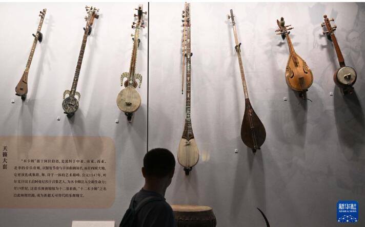 11月29日,参观者观看展出的乐器木卡姆。