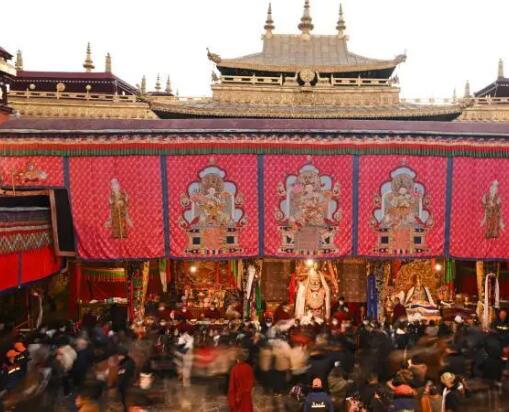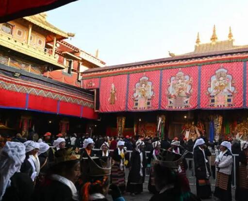 图为信众在大昭寺朝拜白拉姆像。中新社记者 贡嘎来松 摄