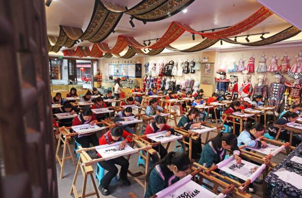 “注意运用不同的针法,绣出图案的立体感……”记者近日走进彭水县职业教育中心民族工艺品制作专业教室看到,特聘苗绣教师麻兴姐、王菊正手把手教授学生们苗绣技艺。 “有些学生已经展现出很大的潜力,你看这幅学生绣的《苗家少女绣花图》,构图和针法都达到了比较高的水平。”麻兴姐指着墙上的一幅苗绣作品说。 重庆市级“乡村工匠”麻兴姐正在教学生苗绣技艺。(新华社记者周凯 摄) 看着认真练习的学生,重庆市级“乡村工匠”57岁的麻兴姐既欣慰又羡慕:“我从小跟着大人边看边学苗绣,然后自己拜师,走了不少弯路。现在孩子们一开始学就能得到专业指导,苗绣这一非遗技艺一定会得到更好地传承。” 重庆市彭水苗族土家族自治县地处渝鄂湘黔交界的武陵山区,因苗族人口多而有“苗乡”之称,优美生态和民族风情让这里产生了苗绣、蜡染、剪纸、根雕等手工技艺。随着生活方式的变化,这些传统工艺的生活日用功能下降,从业工匠师傅数量减少,传统师带徒的技艺传授方式难以为继。 近些年,彭水县依托县职业教育中心,聘请民间匠人为教师,开展非遗技艺体系化教学和研究;同时,在景区设立非遗体验中心、苗绣展示馆等,大力发展非遗研学、苗服旅拍、文创产品开发、技术培训等产业,通过产学研一体保护好、传承好非遗技艺。 彭水县职业教育中心党委书记陈代全介绍,学校专门聘请5位民间匠人组建教学工作室,开发非遗技艺教材和专著7本、申报专利13项,每年输送毕业生120多人。 全国“乡村工匠”王光花是彭水县职业教育中心的蜡染课教师,家里几代人从事蜡染。她说过去技艺多是经验积累,“我发掘讲述其中的民俗文化,蜡染不同的花纹有着不同的吉祥含义,学生更有兴趣学了。” 除了培养专业人才,传承非遗离不开普及创新。彭水县旅游资源丰富,景区成为非遗展示的好窗口。走进该县蚩尤九黎城景区,非遗体验工坊、民俗服饰展示馆、工艺品店等吸引了不少游客。 “除了展示销售苗绣、剪纸等工艺品,我们的蜡染研学体验项目很受欢迎。游客和中小学生用纯天然植物蜡染服饰、抱枕、丝巾等,在亲手制作中感受非遗魅力。”景区“天下九黎”非遗创新创业工作坊负责人说。 今年10月,彭水县举行苗绣技能大赛。(赵勇 摄) 校企合作把剪纸印在挎包、衣服上,开发非遗系列文创产品180余个;将苗绣与服装设计相结合,制作时尚的新式苗服,发展旅拍等新业态。彭水县探索产学研一体的方式,让古老的苗族非遗技艺得到更好传承。“接下来,我们将继续加强政府、学校、景区、企业联动,以非遗传承助力区域发展。”彭水县文化旅游委党委书记温江华说。