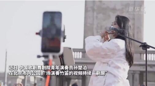 近日,孙楚泊在北京市内公园、广场演奏竹笛的视频持续“刷屏”。精湛的技艺、清丽的形象、俏皮的互动……现场掌声此起彼伏。
