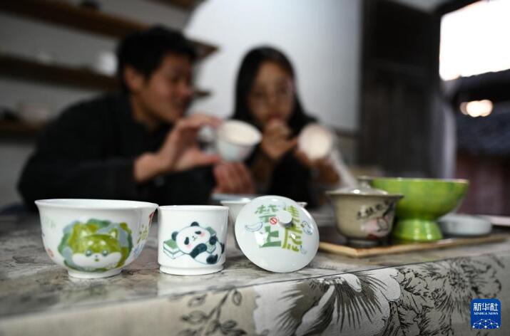 妻子马静文,作为一名视觉传达设计师,则为古窑融入了现代元素。鲜艳的颜色、可爱的图案、暖心的语录,“添加这些意象符号,能让杯子从一个‘器皿’变成一个‘情感容器’。” 马静文说,“我们要在深厚的文化基础上,长出符合当下需求的新产品。”