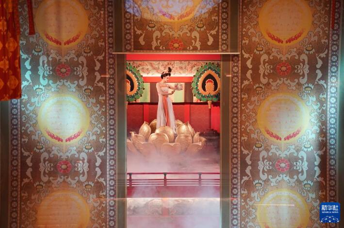 12月23日,演员在街区内表演大唐乐舞《霓裳羽衣舞》。