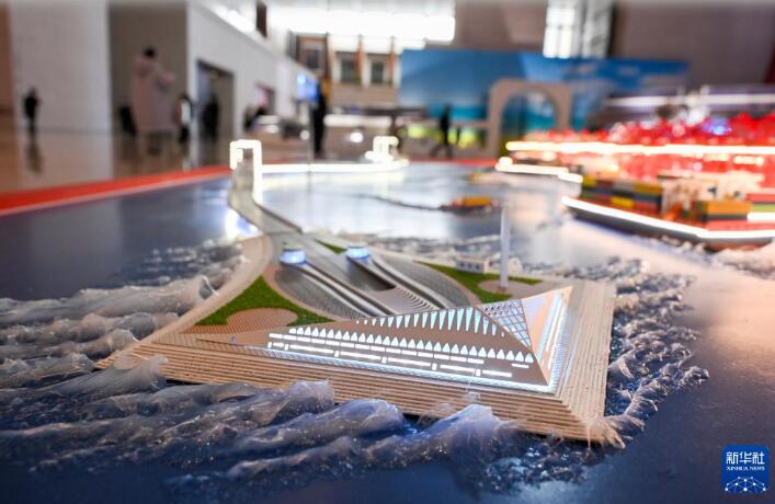这是在“筑基强国路——中国制造‘十四五’成就展”上展出的深中通道模型(12月29日摄)。