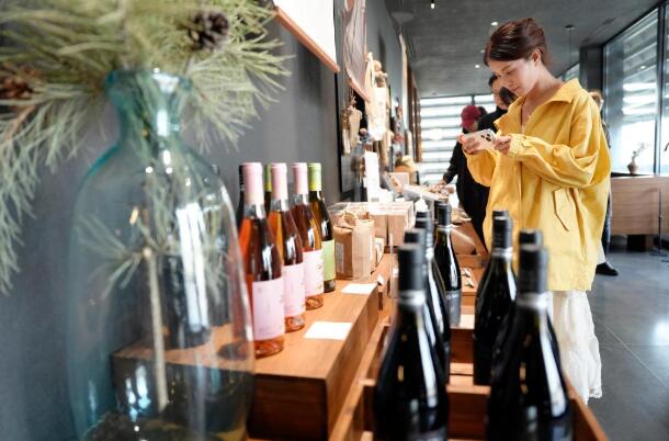 3月26日,参观者在大乐之野——夏多兰民宿葡萄酒庄了解葡萄酒知识。新华社记者王鹏 摄