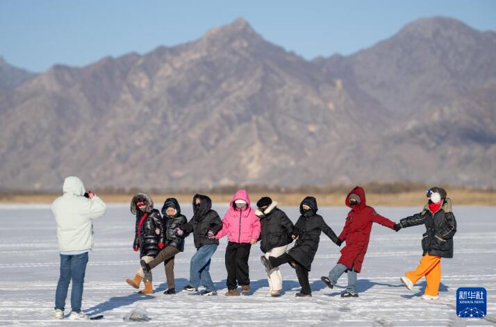 人们在呼和浩特哈素海冰面上游玩(2026年1月10日摄)。