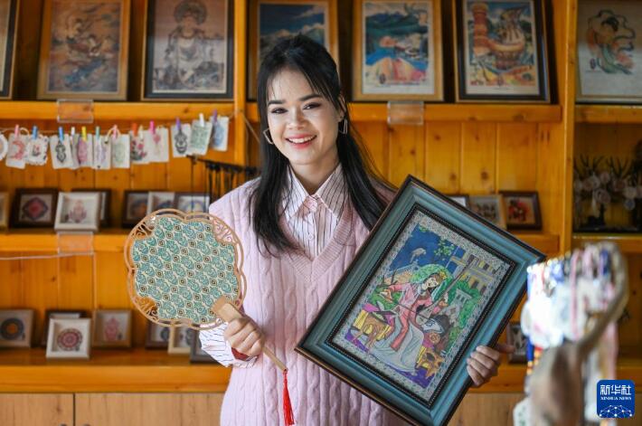 “每当画笔落在桑皮纸上,我都能感觉到,自己连起了家乡的过去和未来。”2025年从新疆艺术学院视觉传达设计专业毕业的穆耶赛尔,选择回到家乡,成为一名桑皮纸文创产品设计师。她的工作台上,摆满了自己设计的桑皮纸装饰画、冰箱贴、艺术台灯等产品,每一件都注入了她对于传统文化的理解与巧思创新的尝试。