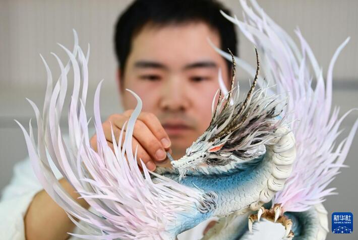 糖艺师张勃在制作糖艺作品《山海经应龙》(1月13日摄)。