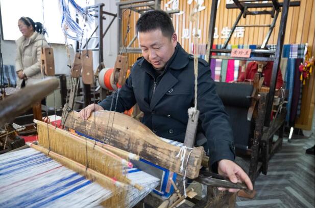 陶文成心里清楚,非遗传承不能只靠情怀。学会母亲的纺织绝活后,他运用大学所学的机械知识,对老织机进行了一些“不伤筋骨”的改良,提高了生产效率。他还经常走出红安,参加各类展会。母校组织的脱产培训,他也积极报名。