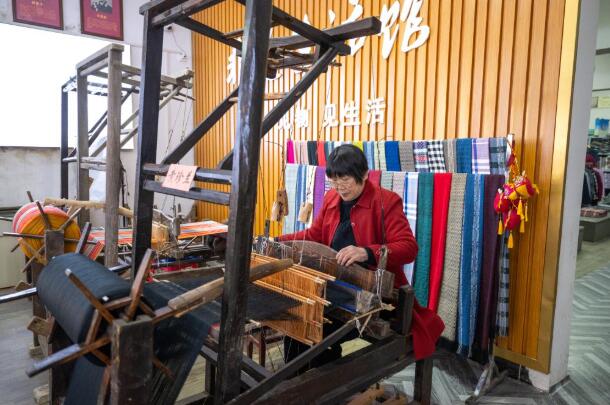 如今的长胜街,15家布品店铺几乎都在售卖陶文成家的大布产品。一条手工围巾售价180至200元,依然供不应求。他家的大布销量已占到红安当地三分之一的份额,年营收近600万元。最令陶文成感到踏实的是,工坊还带动周边留守妇女就业,手法熟练的女工日薪能达到200元左右,乡亲们在家门口就能增收。