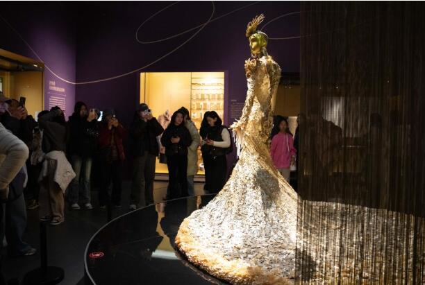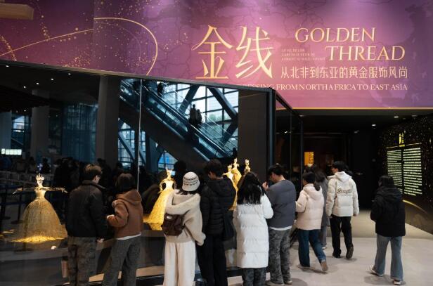 “早就听说了成都博物馆‘金线——从北非到东亚的黄金服饰风尚’特展,为避开人群我特意选在工作日,没想到特展厅门口已经排起了长队。”站在一件非洲马格里布的卡夫坦镶金长袍前,四川大学历史专业的研究生任同学仔细端详着,她激动地说,“来自世界各地的织金珍品在此相遇,展品的每一处细节都凝聚人类智慧与审美的艺术结晶。仿佛穿越到千百年前,与制作华服的匠人产生了跨越时空的对话。” 观众在成都博物馆参观“金线——从北非到东亚的黄金服饰风尚”特展。新华社记者 胥冰洁 摄 当黄金的永恒光芒与丝绸的柔美光华交相辉映,一条文明经纬中的“金色纽带”,在千年古道间粲然铺展,终在“千年丝路重镇”成都,迎来跨越山海的相聚。成都博物馆“金线”展自2025年11月30日开展以来,引起了持续不断的观展热潮。“平时工作日1万人左右观展,周末节假日2万人,小程序上提前几天门票就会约满,八成以上观众是青少年。”据成都博物馆工作人员介绍。 观众在成都博物馆参观“金线——从北非到东亚的黄金服饰风尚”特展。新华社记者 胥冰洁 摄 作为全球巡展的首站及中国境内唯一一站,展览以“金线”为脉络,汇集了大量来自法国凯布朗利博物馆、法国国家考古博物馆、法国国家自然历史博物馆、法国里昂汇流博物馆等7家法国文化机构的200余件/套织金珍品,以及中国丝绸博物馆、辽宁省博物馆、甘肃省博物馆、青海省文物考古研究院等8家国内文博机构的珍贵藏品,结合最新考古成果,为观众奉上一场时空宏大、展品富丽绚烂的年度艺术盛宴。 成都与丝绸的渊源,早已刻入文明肌理。从三星堆遗址中发现的丝蛋白,到古蜀青铜器上清晰的蚕桑养蚕图案,都诉说着古蜀先民丝绸制作的故事。 “早在汉代,成都的纺织工艺就是领先于世界的。”“金线”展的中方策展人魏敏说,成都博物馆之所以全力引进这个主题展,既看中了凯布朗利博物馆极具标识度的展品与专业视角,也深知其在巴黎吸引超30万观众的文化魅力,而成都则是这场跨文明对话的主场。 观众在成都博物馆参观“金线——从北非到东亚的黄金服饰风尚”特展。新华社记者 胥冰洁 摄 为了让展览更贴合成都气质,成都博物馆倾注了大量心血。展览精心设计的双线叙事结构:一条主线聚焦技术源流,从古代手工技艺到现代科技织金,清晰呈现传统文化向现代生活的演变逻辑;另一条主线围绕文化交流,以丝绸之路与河西走廊为主轴,延伸至北非、中东、东南亚的跨文明交汇,通过“金线”这一独特切口,生动讲述文明交融的动人故事。 漫步展厅,在“日落之地”马格里布,金线是奥斯曼帝国权力的印记,卡夫坦婚礼长袍以金线刺绣点缀紫色袍身。在欧亚非地理心脏的中东,18至19世纪的埃及婚礼华服以欧洲西式礼服为版型,搭配奥斯曼风格的刺绣,奢华溢彩。在阿拉伯半岛上,宽大的长袍装饰着金银刺绣和亮片,金线勾勒的花卉格纹与几何图案承载着阿拉伯独具特色的信仰美学。在东南亚,流光溢彩的印度纱丽、色彩鲜艳的印尼纱笼、柬埔寨绊尾幔……都有金线熠熠生辉。 观众在成都博物馆参观“金线——从北非到东亚的黄金服饰风尚”特展。新华社记者 胥冰洁 摄 “东方丝国”中国,金线是衣冠之上的礼仪典章。唐代龟甲纹织金锦带工艺精细复杂,元代织金奔鹿残片清丽典雅,明代大红色绸绣过肩麒麟鸾凤纹女袍雍容华贵,清代的黄地流云蝙蝠纹妆花龙袍尽显皇家威仪,深刻诠释着“衣以载道”的文明精髓。 “怀着激动的心情,展出第一天我就去看了,这是我第一次看汉服文物,特意穿上汉服。”站在明代大红色绸绣过肩麒麟鸾凤纹女袍前,汉服爱好者小树不停拍照打卡。“我满眼都是这件文物,旁边还有一件漂亮马面裙,我从没有见过,衣服上的图案都是绣花,下摆的小花也好好看。” “金线技艺并非孤立的文明产物,经纬交错间,一条文化纽带徐徐织就。”魏敏说,希望观众在观展中,感受这场以“金线”为纽带的文明对话,既是美学的交融,也是技艺的传承,更是丝路上各民族相遇、相知、共创的当代延续。