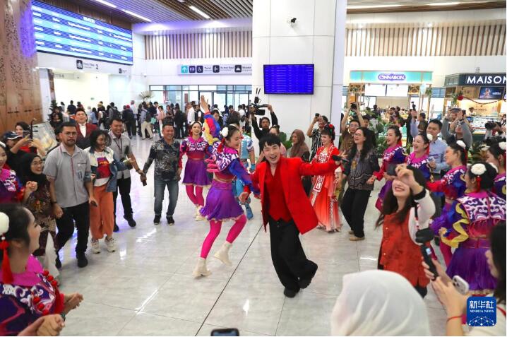 来自广西歌舞剧院、广西戏剧院的演员2月4日在印度尼西亚雅加达雅万高铁哈利姆站上演“马上有福”城市快闪活动,传递浓厚的农历春节气氛。
