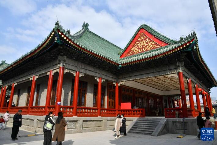 这是山东古建筑博物馆内的万字会旧址济南母院主要建筑母殿(2月24日摄)。 经整体修缮保护,位于济南市上新街的山东古建筑博物馆近日向公众开放。山东古建筑博物馆依托万字会旧址济南母院设立,是山东省首座收藏、研究、展示中国传统建筑构件、技艺及发展历史的专题性博物馆。万字会旧址济南母院始建于1934年,建筑群由四进院落构成,是全国重点文物保护单位。 新华社记者 徐速绘 摄