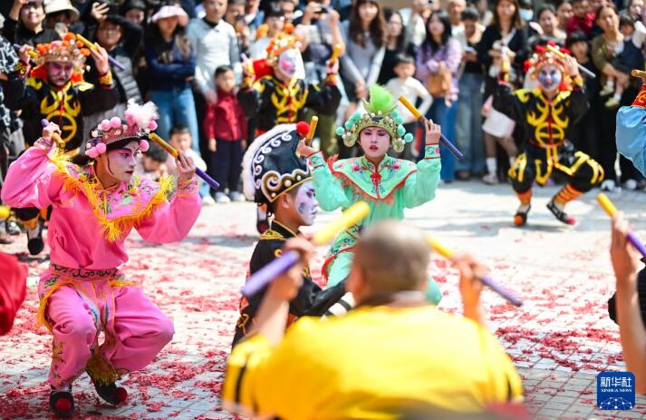 2月22日是农历大年初六,广东省普宁市不少商铺选择在这一天开门迎客,开启新一年的经营。在普宁市池尾街道,上寮英歌队身着传统服饰,伴随着铿锵有力的锣鼓声走上街头,挥槌起舞,以充满力量感的英歌舞表演传递对新一年事业兴旺、开工大吉的美好祝福。