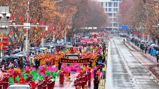 央广网西安3月3日消息(记者侯凯奇)3月1日,备受瞩目的“龙腾狮跃闹新春·鼓韵渭滨展宏图”2026年社火游演活动成功举行。数万名市民游客齐聚宝鸡市经二路沿线,在传统民俗的盛宴中感受浓浓年味。 上午9时50分许,随着3辆引导车整齐列队、鸣笛开道,游演正式拉开序幕。本次活动作为宝鸡市渭滨区新春文旅盛宴的重头戏,汇聚了3000余名演职人员,14大特色方阵,规模宏大,气势非凡。 精彩的舞狮表演(央广网发 渭滨区委宣传部供图) 南北文化交融是本次游演的一大亮点。来自佛山的醒狮队惊艳登场,以其浓郁的岭南风情赢得满堂喝彩;而特邀加盟的陇县马社火,凭借雄浑古朴的造型与经典传神的演绎,让观众近距离感受到了地道的西府民俗韵味;作为国家级非物质文化遗产,陈仓社火以车社火、高芯社火、血社火在观众面前完美呈现,三种技艺交相辉映,成为整场社火最具看点的“王牌招牌”。 游演现场,由100面威风锣鼓组成的方阵齐声轰鸣,鼓声震天,敲出了三秦儿女的豪迈气概,也奏响了渭滨区新年奋进的乐章。来自渭滨区10个镇街的队伍各展风采,每支队伍都洋溢着饱满的热情。舞狮灵动活泼,引得孩子们阵阵欢呼,划旱船、扭秧歌等传统民俗表演轮番上演,表演者们身着鲜艳的服装,手持彩扇绸带,步伐欢快,将西府人民的质朴与热情展现得淋漓尽致。 此次社火游演路线贯穿城市主干道,浩浩荡荡的队伍从金渭路口出发,沿经二路东段一路向西,最终抵达炎帝园。所到之处,欢声雷动,锣鼓喧天。街道两旁,市民们或踮脚张望,或举起手机记录精彩瞬间,笑容洋溢在每个人的脸上。 浩浩荡荡的社火游演队伍(央广网发 渭滨区委宣传部供图) 为了确保活动安全有序进行,宝鸡市公安局交通管理支队渭滨大队提前发布了道路交通管理通告,对经二路全段等相关路段实施了临时交通管制。同时,渭滨区多家单位密切联动全力保障了活动的顺利开展和观演群众的安全。 据悉,此次社火游演,不仅是一场视觉与听觉的双重狂欢,更是渭滨区深厚文化底蕴的自信表达。它以传统与现代交融的方式,激活了历史文化资源,为群众献上了一份厚重的“文化年货”。龙腾狮跃间,舞动的是渭滨儿女昂扬向上的精气神;铿锵鼓韵中,奏响的是渭滨区倾力打造西部最具竞争力、最具幸福感城区的奋进号角。