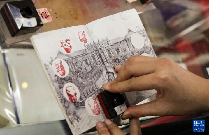3月23日,一名游客在圆明园收集创意印章。