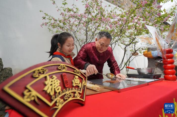 3月26日,学生在体验糖画技艺。