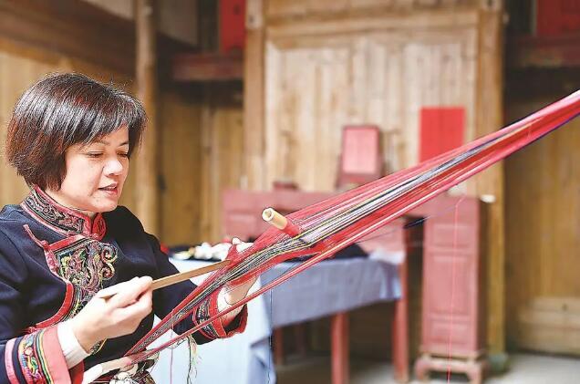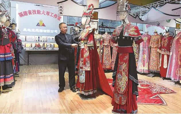 钟桂梅在设计畲族服饰(李郁 摄) 吴廷文在整理畲族服饰(陈雅芳 摄) 桃林野径、老厝深巷,一群姑娘身着畲服、头戴凤冠,穿梭其间拍照打卡。裙摆轻扬间,银器叮当作响,将畲族服饰之美展现得淋漓尽致。这是3月25日,闽东畲族传统服饰制作技艺的两名代表性传承人在福安联合开展非遗公益旅拍活动的场景。 作为全国畲族人口最多的县份,福安畲族文化底蕴深厚,畲族服饰便是其中一个重要元素。《福安县志》曾有这样的描述:“短衣跣足,妇人高髻蒙布,加饰如璎珞状。” 岁月流转,因使用场景不断缩小,畲族服饰一度淡出大众视野。如今,福安当地的非遗代表性传承人通过改变板型、款式等,推动畲族服饰创造性转化、创新性发展,再展非遗之美。 技艺一度难觅 “身着这套蓝色畲服,春天在花丛里拍照打卡再合适不过了……”春分时节,闽东畲族传统服饰制作技艺代表性传承人钟桂梅位于福安市畲族文化中心的工作室内,慕名而来的消费者正挑选款式,定制畲族服饰。 步入其间,自清末民初至今的各式畲族服饰整齐陈列,畲族服饰的发展脉络仿佛在眼前展现开来。“在畲族发展历程中,服饰是记录畲族人文精神和民族审美观的直观载体。”自幼生长在坂中畲族乡井口村的钟桂梅回忆道,“每次喊奶奶上街赶集,她总会特意换上畲服。在老人心中,身着畲服便是一种美。” 言谈间,钟桂梅拿出奶奶出嫁时穿的畲服。只见黑色苎麻材质已有一丝泛白,铜纽扣也生锈变黑,但衣领、右襟处缝制的图案依旧色彩鲜艳、立体感十足,指尖抚过,一针一线间的细腻感清晰可触。 “过去,畲族群众大都居住在偏远山区,畲族服饰以苎麻为主要原料,颜色素,尚蓝、黑,人们常在衣领、右襟处用彩色针线绣上各式纹样,将对生活的热爱与期许都绣在上面。”钟桂梅介绍,文献记载“织绩木皮,染以草实,好五色服”,描述的就是畲族服饰最原始的特征。 10多岁时,钟桂梅便开始当裁缝,那时她主要制作普通衣裳,偶尔才有人定做畲服,因为“日常穿畲服的人已凤毛麟角”。她转型制作畲族服饰,源于一个特殊的定制订单,“2007年,福安市里想要制作一套工艺比较复杂的畲族服饰,但寻遍四方,有手艺的老师傅年事已高,年轻一辈又缺乏经验,市民宗局相关负责人找到我,希望能由我制作”。 “刚接到任务时我心里也没底。畲服刺绣很讲究,要想绣得精美,得下苦功。”钟桂梅找到坂中畲族乡大林村70多岁的畲族服饰制作老师傅钟培伵,跟在他后面潜心学习,得益于裁缝出身练就的扎实功底,很快便掌握了畲族服饰制作技巧。 历时3个多月的努力,钟桂梅圆满完成了订单,但这件事就像一颗石子在她心中激起层层涟漪。“奶奶那一辈曾引以为傲的畲服,如今竟连会制作的人都难找了,再不抓紧传承,等到老一辈逝去,这项技艺可能也随之沉寂。”她暗自思忖。 坚守民族特色 自那之后,钟桂梅开始将更多精力倾注到畲族服饰制作中,工作室陈列的一套套新型畲族服饰便是最好见证。这些年,她的手艺愈发精湛,能娴熟运用几十种针法和色线,将凤鸟、花卉等畲族经典图案绣入服饰,让每一套畲服都拥有独特的纹饰与质感。 与此同时,她也注意结合大众审美,对畲族服饰的板型、款式进行优化改良。学美术的女儿还常为她的设计提供灵感,让她制作的畲服既坚守传统,又不落俗套。 “不论板型、款式如何变,属于民族特色的不能丢,不然就少了灵魂。”在畲族服饰设计中,钟桂梅始终坚守原汁原味的民族内核。她举例说:“福安畲族服饰有一个典型特征——女装右腰侧有一处三角印章,相传是上古高辛帝三公主嫁给畲族先祖时,高辛帝赐封所盖的金印,也是福安畲族女装区别于其他地方畲族服饰的重要标志。我们设计时一定会保留这独属于福安畲族的印记。” 传承,远非会做畲族服饰那么简单。钟桂梅坦言,比起掌握畲族服饰制作技巧,如何让畲族服饰重新走进大众视野、让手艺人能靠这项技艺立足,才是真正的难点,“现在服装选择太多了,就算是畲族的特定节日,穿畲服的群众也不多了”。 畲族服饰市场的日渐缩小,倒逼着手艺人另寻发展新路。在钟桂梅的工作室里,畲族织带、刺绣香囊等文创产品琳琅满目,“春暖花开时节,有很多团队和我们对接,通过服饰租赁的方式,让畲族服饰的美重新回到大众视野”。 让更多人看见美 省民间工艺大师、闽东畲族传统服饰制作技艺代表性传承人吴廷文,也在积极探索畲族服饰创新之路。走进他的凤之玺工作室,数十套色彩鲜亮、制作精良的畲族服饰让人眼前一亮。 他说:“这是我们在第十六届海峡两岸文博会时展出的创新型畲族‘凤凰装’,以鲜明的色彩、独特的剪裁吸引观众目光,当时很多人前来试装体验。” 原来,他将旗袍的设计理念与剪裁工艺融入畲族服饰制作中,让畲服整体风格更趋时尚。 “融合、创新,一直贯穿于我的设计中。”在吴廷文看来,从外地迁入闽东的畲族群众在长期生产生活中,形成福安式、霞浦式、福鼎式等不同风格,融合本就是畲族服饰发展的主线。作为非遗代表性传承人,更要在传承中不断汲取众长、推陈出新。 吴廷文珍藏着在第五届福建省工艺美术精品“争艳杯”大赛上获得的银奖证书。他说:“过去畲族服饰多是连袖,袖口和腰身十分宽大,展现不出人体的线条美,我通过对板型、工艺等进行改进,让服饰更贴合体型,作品因而得奖。”