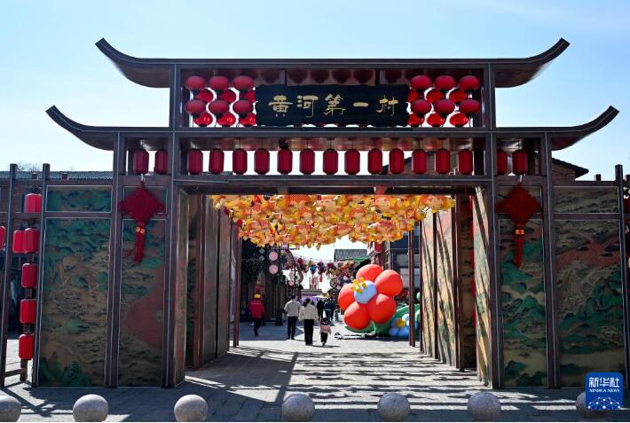 3月31日,游客在位于画匠营子村的“天下黄河第一村”景区游览。