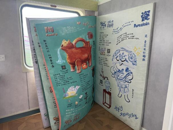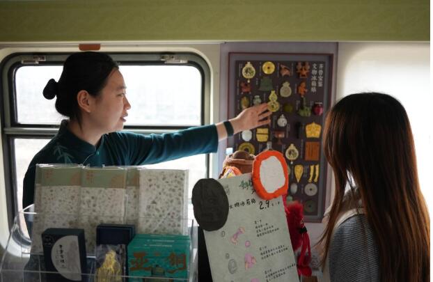 早上8点33分,K4016次列车准时从泰山站发车,驶往邯郸站。不同于普通列车,这列“好客山东·齐鲁1号”文物研学主题旅游列车的车身装饰着青铜纹样和陶器彩绘,格外引人注目。 青铜、玉、瓷、陶、画像石……登上列车,乘客穿行在不同文物主题的车厢间,仿佛穿越时空,与文物创意相伴,开启一场文化之旅。 据介绍,列车将10节车厢打造成七个不同主题的“展厅”,精选32家博物馆的89件(套)珍贵文物元素,通过车厢设计、互动体验和数字化展示,把“博物馆”开到了铁轨上。 乘务员正给乘客介绍车上的文创产品。新华社记者吴飞座 摄 列车上,随处可见文物元素,乘客座椅旁的车体上装饰着文物主题的手绘,同时附有文物科普知识。 进入青铜主题车厢,亚醜钺元素随处可见,这件商代晚期的青铜钺是山东博物馆“镇馆之宝”之一,展示着山东地区商文明的独特魅力。其他特色文物,如红陶兽形壶、举方鼎、鲁国大玉璧、元青花龙纹梅瓶等,也以模型、文创、手绘等形式在不同主题的车厢“现身”。 走进专供乘客体验的娱乐车厢,记者看到,文物拼装、古今文物对对碰、文物森林、文物软书等十余项游戏广受欢迎,AI智能问答系统更增强了互动体验。 乘客张娅茹正在体验文物华容道游戏,第一次玩华容道的她不时检索手机,查询游戏玩法。“车厢布置太有趣了,文物与列车的结合很有新意。”张娅茹说,她在冠县站下车,原以为3个半小时的车程会很漫长,没想到意犹未尽,直呼不想下车。 “好客山东·齐鲁1号”文物研学主题旅游列车上的互动区域。新华社记者吴飞座 摄 “这些互动道具尤其受年轻游客和儿童喜爱,周末家庭游客较多,各类互动体验游戏是孩子们的最爱。”中国铁路济南局山东济铁旅行服务有限公司乘务指导范霖说,在车上常常看到父母为孩子讲解历史和文物知识,车上的乘务员也都接受了文博知识的培训,可担当“博物馆”讲解员。 据了解,“好客山东·齐鲁1号”文物研学主题旅游列车于2月14日正式开通,串联泰安、济南、聊城、邯郸4座文化名城,打造7站闭环、当天往返的特色研学线路。范霖介绍,这趟文物研学主题列车填补了济南至邯郸间直达普快列车的空白,每逢周末和节假日,车票常常售罄,单日单趟最高客流量超过1300人。 “这趟列车就像建在铁路上的‘移动博物馆’,希望更多人来感受一下这种新奇的旅行体验。”张娅茹说。 乘客正在体验文物华容道游戏。新华社记者吴飞座 摄 “好客山东·齐鲁1号”文物研学主题旅游列车是山东推动交通与旅游融合、创新文旅产品供给、提升消费体验的一次全新实践。据介绍,列车坚持便民惠民原则,保留绿皮火车原有票价。列车串联起沿线63家A级景区、58家酒店和11家博物馆,推出多项免票和折扣优惠,带动沿线文旅消费。 山东省文化和旅游厅相关负责人表示,下一步将以文物研学列车的运营为契机,持续丰富“齐鲁1号”列车品牌体系,提供更优质的文旅服务,切实增强游客的获得感与幸福感。