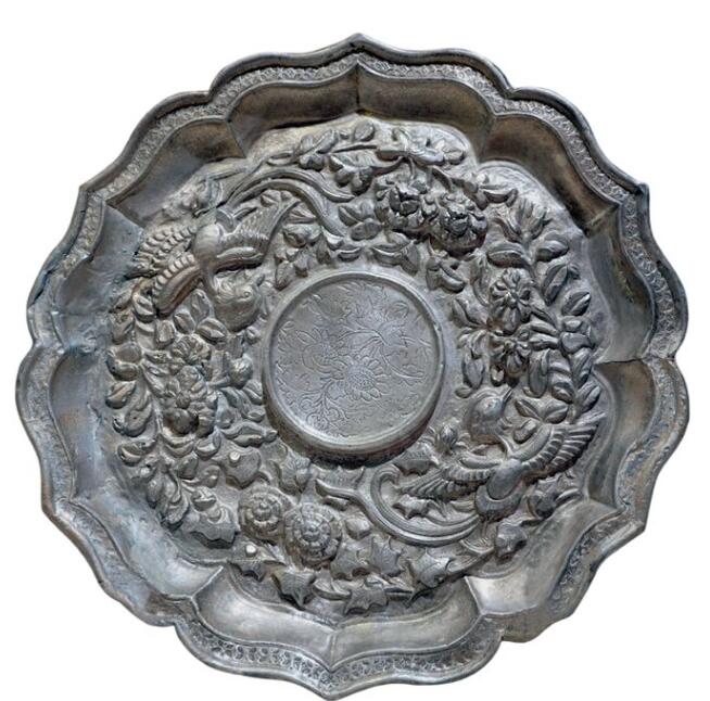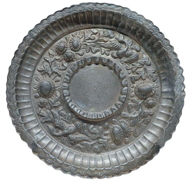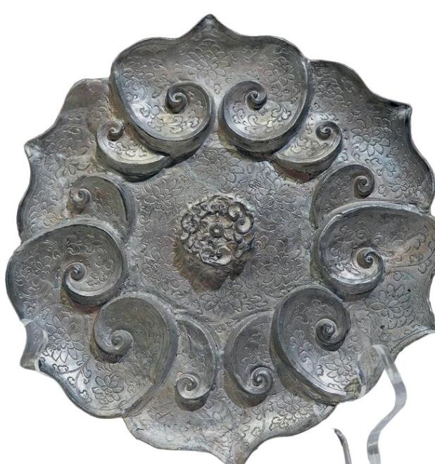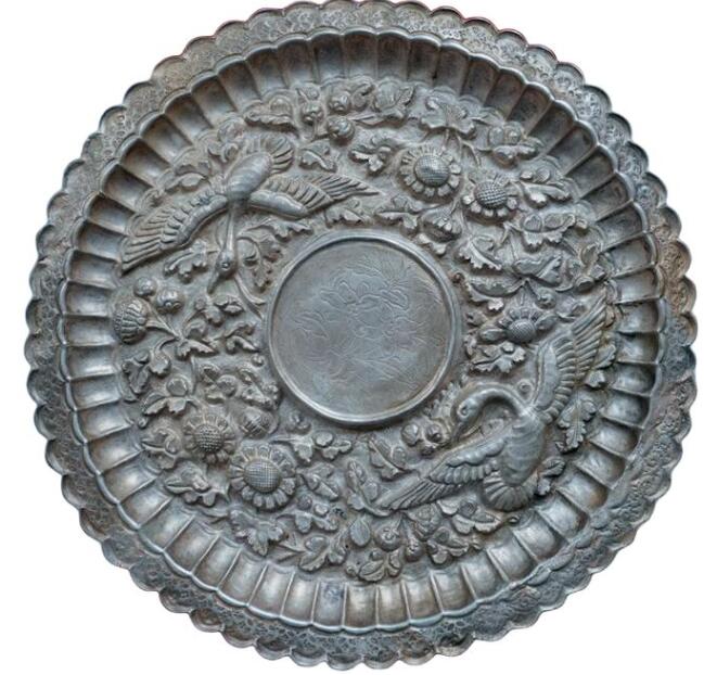 图 1-2 银鸿雁穿花菊瓣纹承盘 江西萍乡上栗县赤山乡观泉村