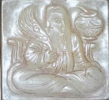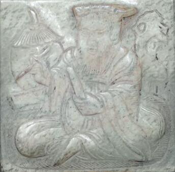 三只金盏虽然分属两处窖藏,但装饰方法和人物风格一致, 制作时间当相去不远,即便不是出自同一银匠之手,制作者也当是生活在同一时代。出自渡口村的两件并不是窖藏之全部,金盏的主人则很可能与观泉村窖藏者家世相近。宋元时期金银器的使用虽远比唐代普及,然而金器究竟占比为少,那么窖藏主人必是家产殷实。从现存器物的款识来看,主人应是诗书之家。“继轩”与“云岫”,大约前者是号,后者是斋名,“云”字款和“岫”字款,似皆为“云岫”之省略。“云岫”显然取自陶渊明《归去来兮辞》“云无心以出岫,鸟倦飞而知还”,赋闲隐居之意可见。盏心人像或著幅巾,或戴莲花冠,又握书卷,持羽扇,都是隐于林下的高士之风雅,也是魏晋南北朝以来诗文与绘笔合力塑造出来的形象,如杭州临安吴越国钱镠墓出土高士图玉带具中的酒人(图9 -1、图9 -2、图9 -3)。孟浩然《白云先生王迥见访》:“闲归日无事,云卧昼不起。有客款柴扉,自云巢居子。居闲好芝术,采药来城市。家在鹿门山,常游涧泽水。手持白羽扇,脚步青芒履。闻道鹤书征,临流还洗耳。”又明吴宽《题马远古松高士图》:“寄傲天地间,不为俗士知。九衢纷车马,有足难并驰。偶来长松下,时复一解颐。手持白羽扇,万事付一麾。吾心在太古,身即太古时。所以陶渊明,羲皇不吾欺。须臾白云起,青山变容姿。即此见世故,长歌返茅茨。”三只金盏中的人物,即不妨概称为高士。