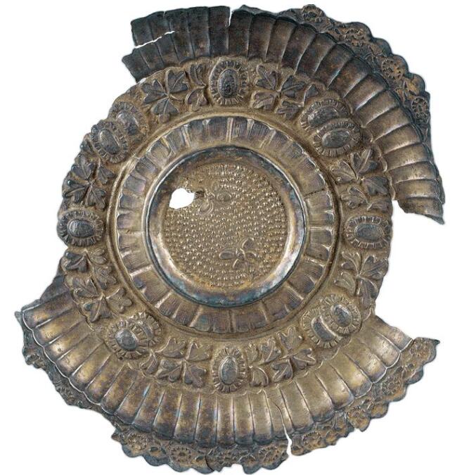 图12 银菊花纹承盘残件 湖南衡南南涧村元代窖藏