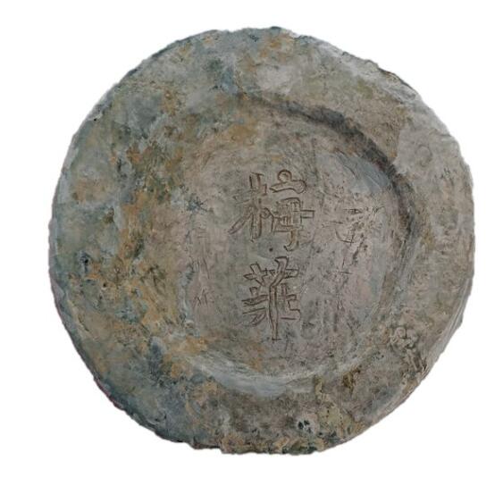 图6 折沿银盆及盆底铭文 江西萍乡上栗县赤山乡观泉村窖藏