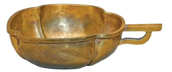 窖藏之一,发现于上栗县赤山乡观泉村一户村民的房基地, 计有金盏二,金杯一,银盆七件,银盘十枚。诸器的尺寸与重量, 均见《南方文物》文,以下只言我的观摩所得及由此而为之重新命名。