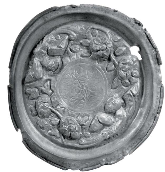图13 银双鸾穿花纹承盘 新安沉船出水