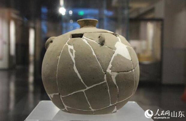 博物馆里的陶壶。大汶口文化时期的陶器制作工艺已达到较高水平。人民网记者 宋翠摄