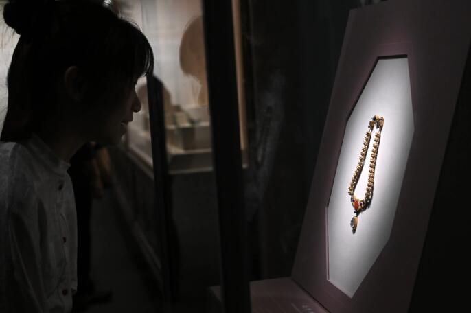 这是展出的镶珍珠宝石金项链(4月13日摄)。新华社记者 金良快 摄