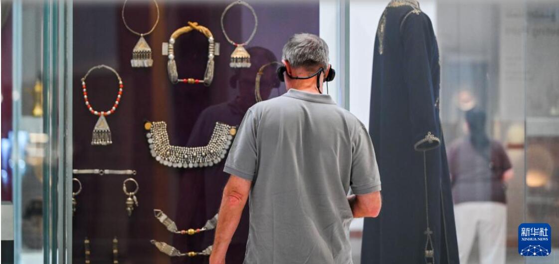 1月12日,游客在阿曼马斯喀特参观阿曼国家博物馆。