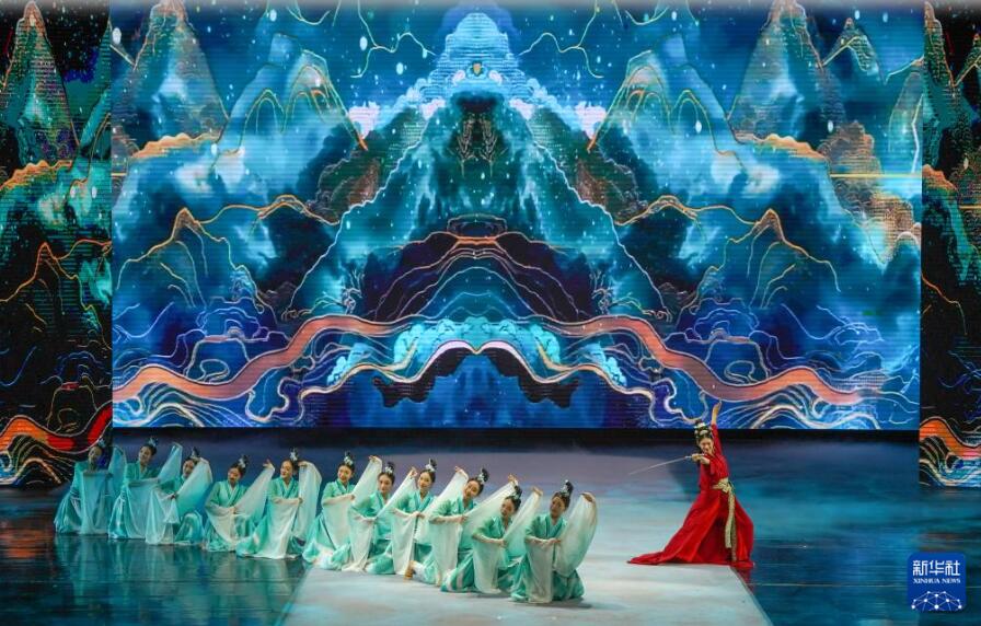 10月13日晚,演员在启幕演出上进行歌舞表演。
