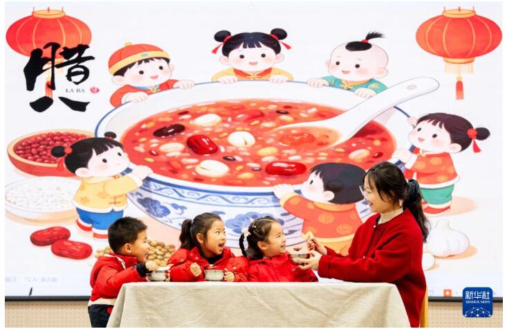 1月26日,在江苏省泰州市御园路幼儿园,小朋友们品尝腊八粥。 1月26日是农历腊月初八,是中国传统的“腊八节”,人们在这一天有喝腊八粥的习俗。 新华社发(杨玉岗摄)